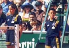 初日を前に完売。かつてない事と、FFTは自賛しているが、実は余ったチケットはダフ屋の組織に。完売で前景気を煽り、闇価格の付加価値を上げようと言う、フランス流経済振興策。しかし、だぶ付き感は否めず、センターコート下段チケット(定価275フラン)は800フランから値切って400フラン(9000円)に。