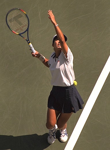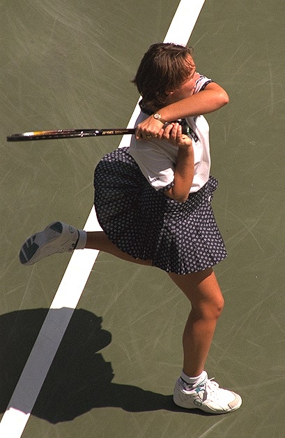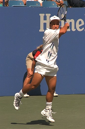 サーブ、ストロークともにヒンギスのスウィングスピードが圧倒的に早く見えます。華奢な体のどこからこんなスウィングができるのか不思議です。
