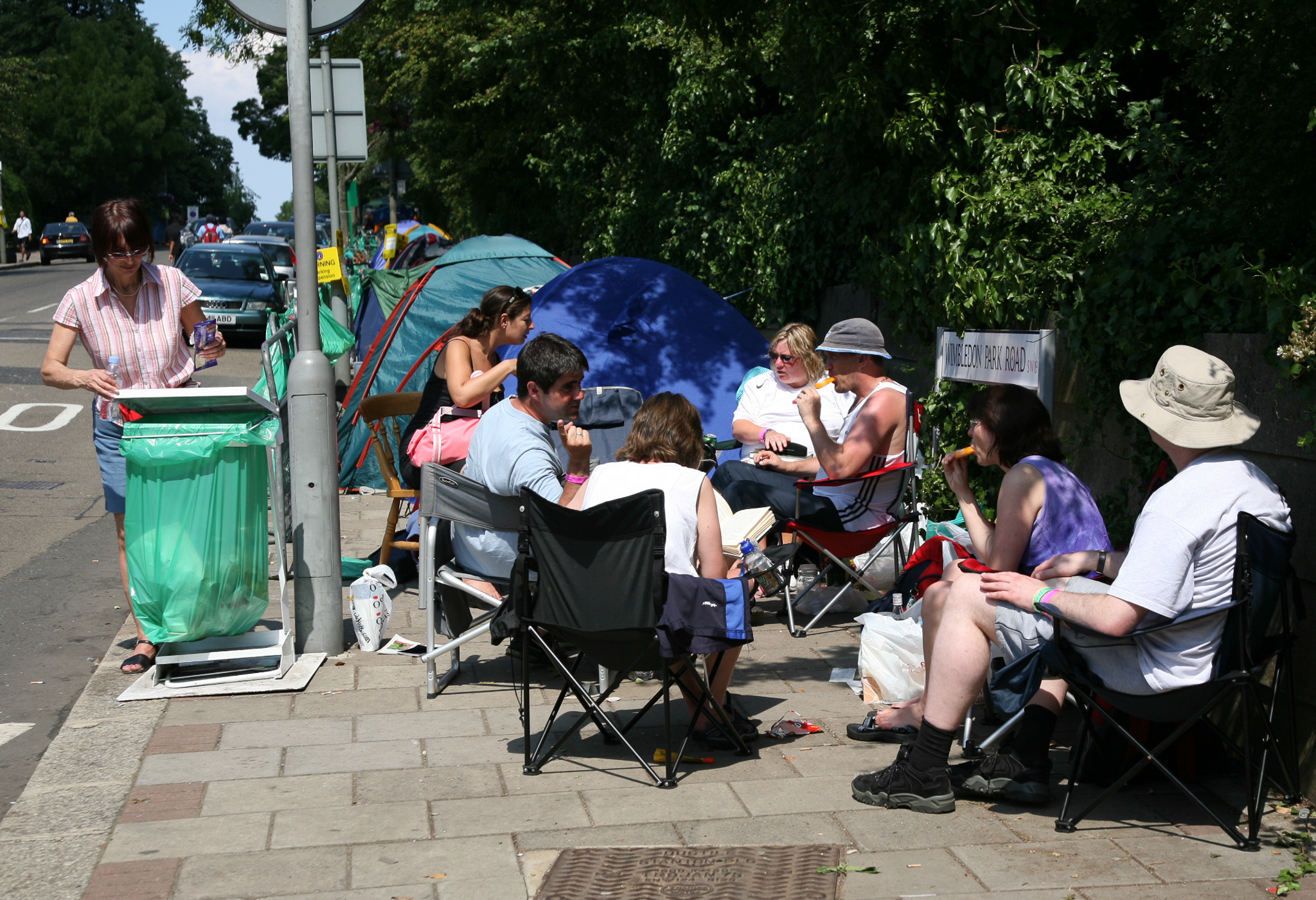 1922年の新聞にウィンブルドン観戦の行列が2000人を超えたとの記事がある。この100年間に行列は、緩やかではあるが変化してきている。古い時代は分からないが、20年前には行列は売り場前の歩道から二手に分かれてできていた。今ではウィンブルドンパークで快適なキャンプができるようになった。振り返ってみると、少しずつ改善されてきている点が多い。2018年になって変わった点もいくつかある。今頃になってと驚かれるかも知れないがクレジットカードが使えるようになった、ウィンブルドンパークを出たあたりからWifiが使えるようになった、給水所が増設された(猛暑で効果は薄いが)、など。一度にシステムを変えることはしない「歩きながら考える」イギリスの流儀なのである。